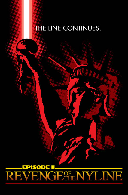 This design was for the "incentive shirt" for NYLine's Stand-A-Thon for Attack of the Clones. The shirt was free to any line member who raised at least $50. The image is based on the "Revenge" of the Jedi poster.