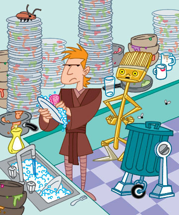 This illustration was done for the Last Laugh section of Disney Adventures Magazine. It's a movie parody titled Star Chores - Episode III: Rise of the Dirty Dishes.